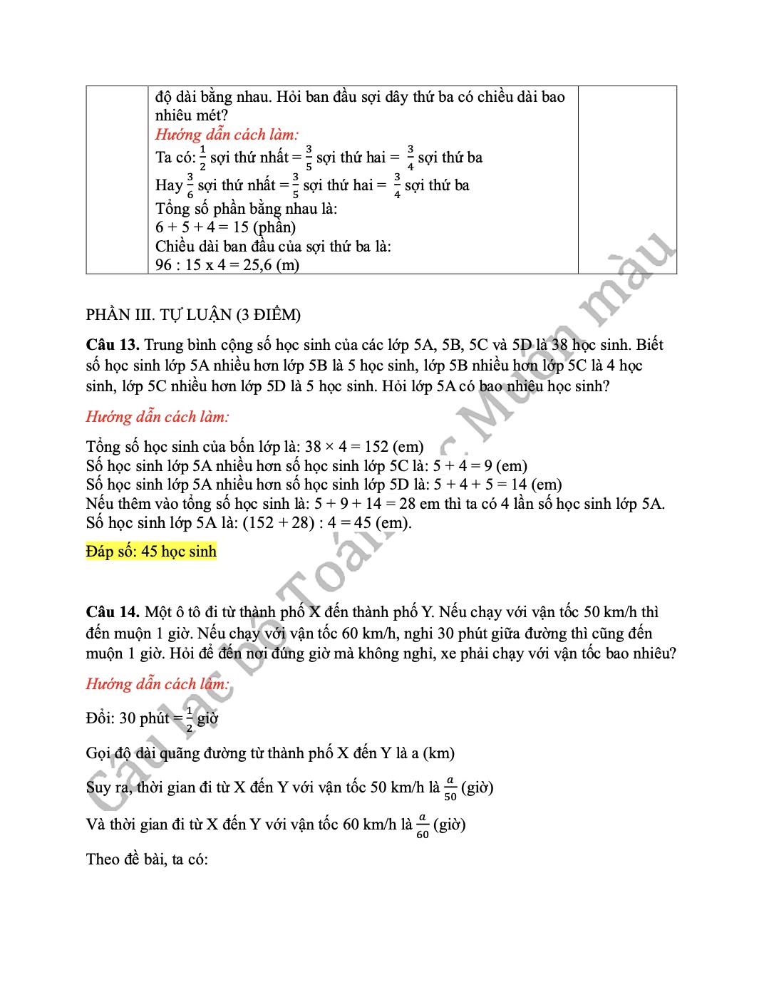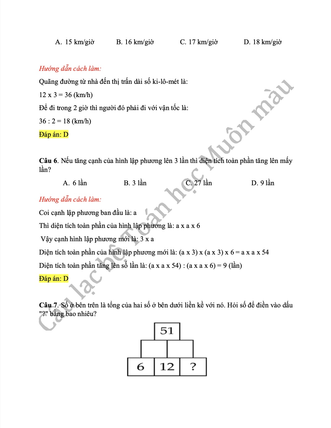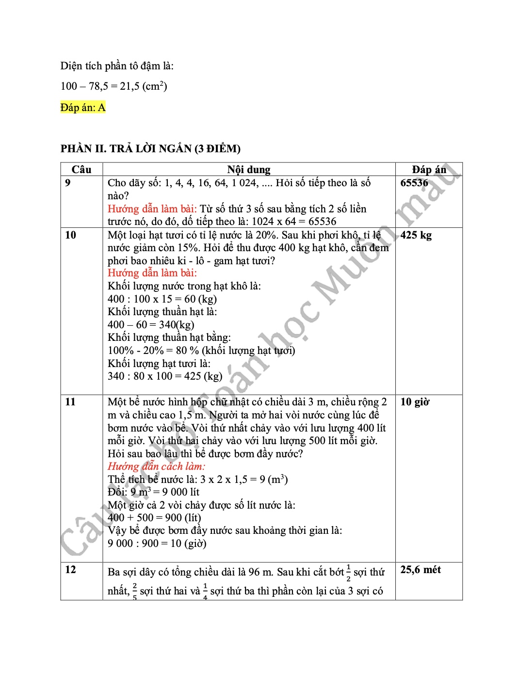ĐÁP ÁN KÌ THI HỌC BỔNG NGÔI SAO HÀ NỘI – Môn Toán Lớp 5