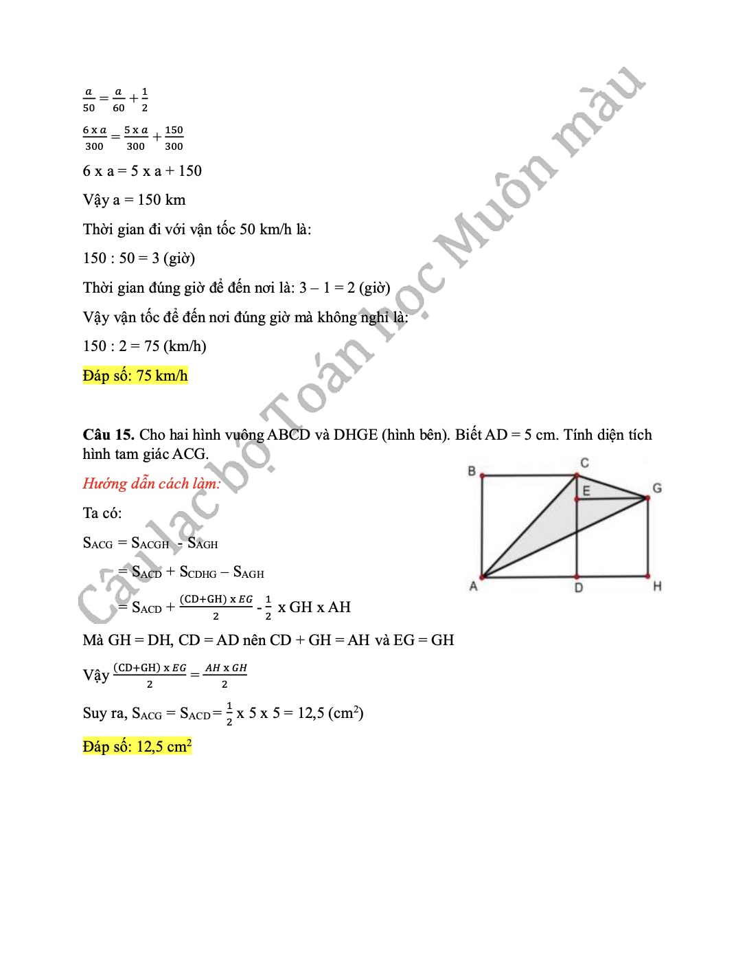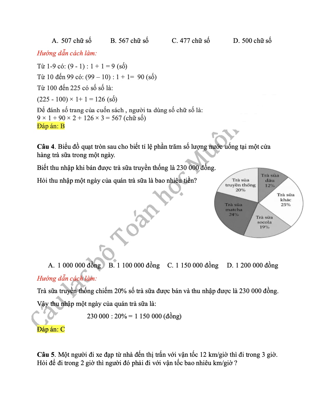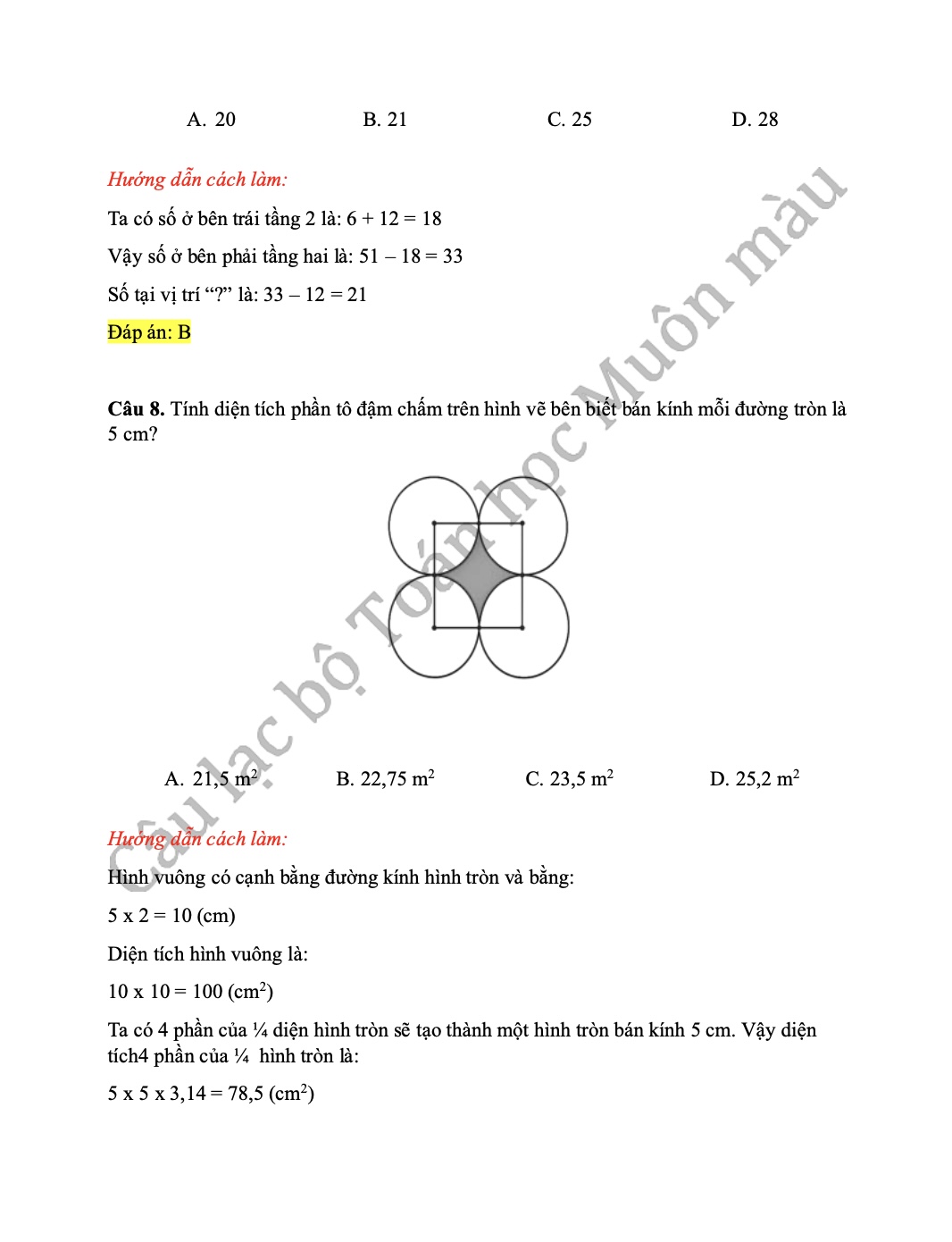 ĐÁP ÁN KÌ THI HỌC BỔNG NGÔI SAO HÀ NỘI – Môn Toán Lớp 5