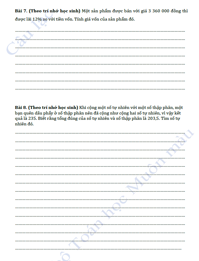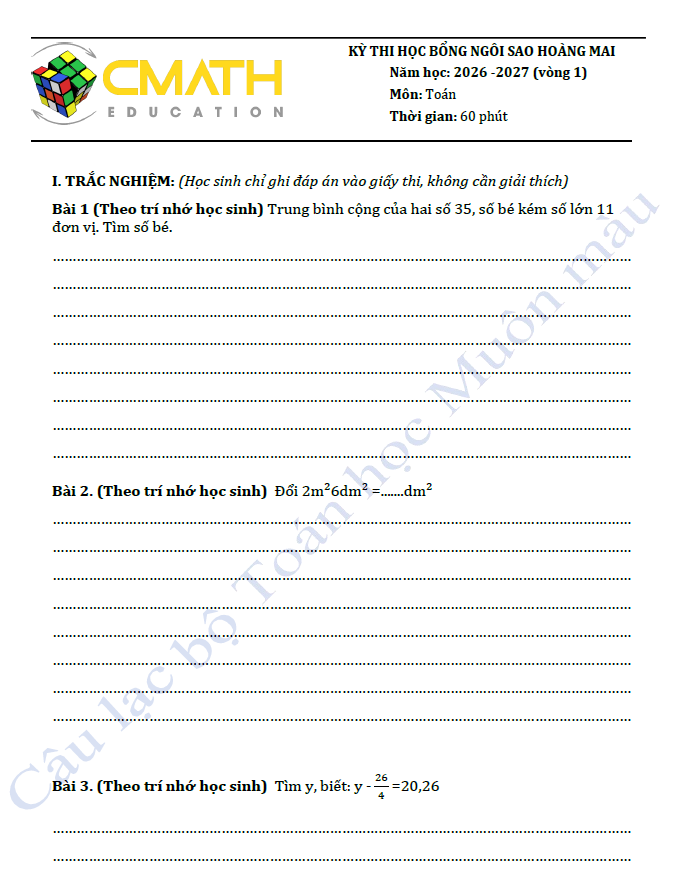 Đề kì thi học bổng trường ngôi sao Hoàng Mai 10-1