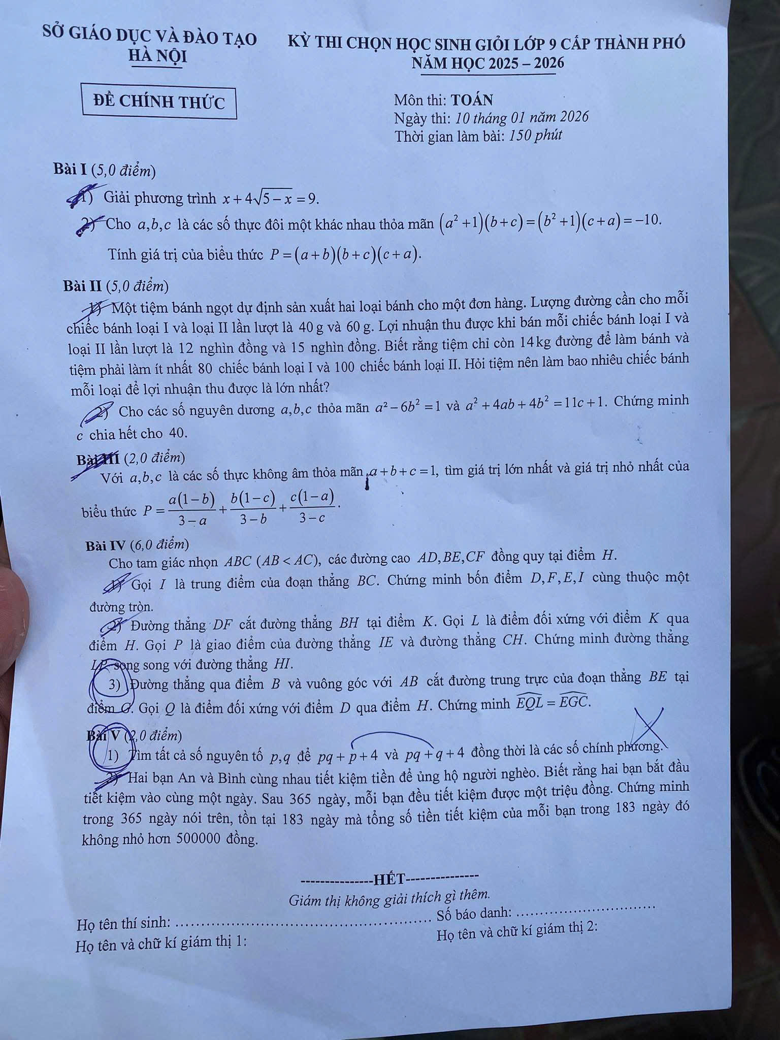 Dưới đây là đề thi môn toán trong kỳ thi chọn học sinh giỏi lớp 9 cấp thành phố năm học 2025 – 2026.